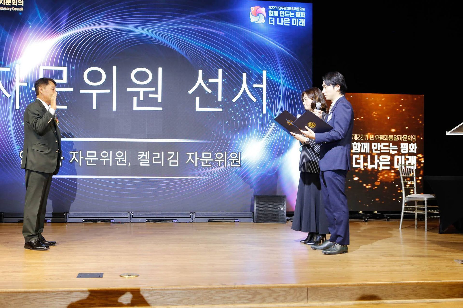 켈리김, 안태하 위원이 대표로 자문위원 선서를 하고 있다.
